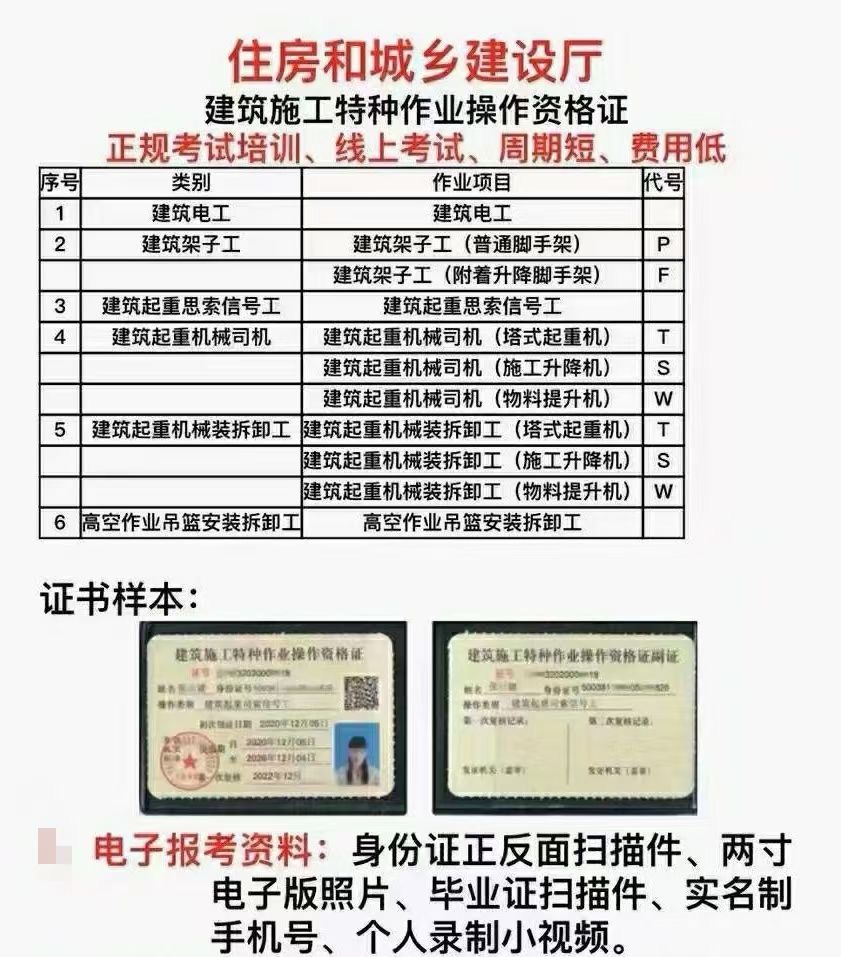 成都建筑电工证报名方式: