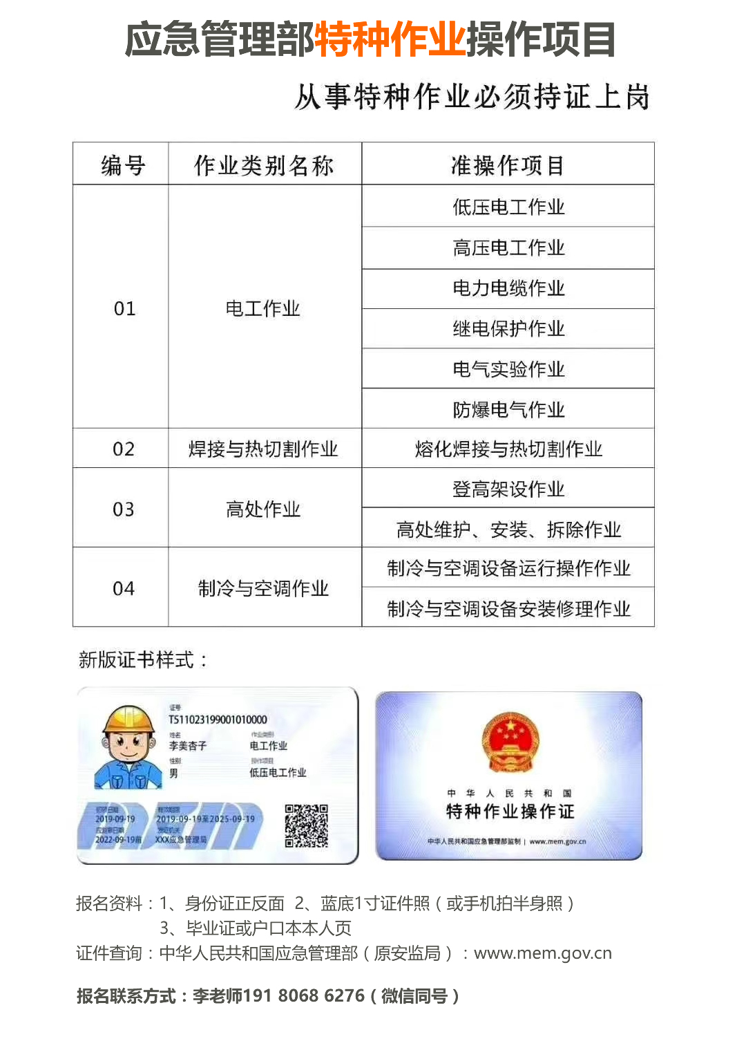 摘要:高处作业操作证 是从事登高架设作业或高处安装、维护、拆除作业工作的人员必须考取的特种作业操作证。该证是原安监局现应急办颁发的,每三年复审一次,每六年需要换证。 特种作业人员必须经专门的安全技术培训并考核合格,取得《中华人民共和国特种作业操作证》(以